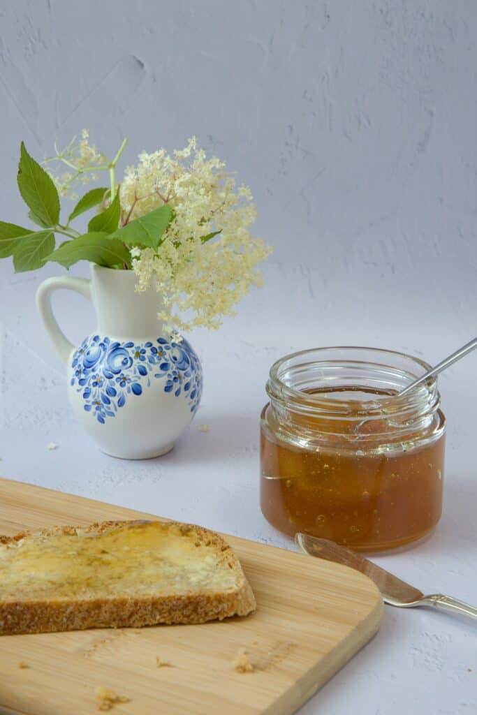 Elderflower Jam is a versatile and delightful treat. We spread our elderflower jelly on our homemade bread toasts, scones and pancakes. Other possible uses are to use it as a filling for cakes and pastries. Moreover, I love to add all of my homemade jams and jelly’s into gift baskets.