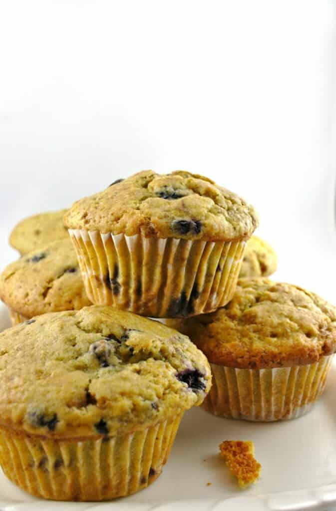 • If using frozen blueberries, toss them in a tablespoon of flour before adding them to the batter. This helps prevent them from sinking to the bottom of the muffins.